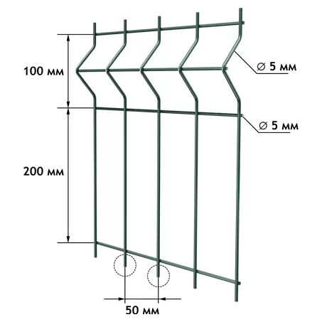 Следующий этап — формирование V-образных изгибов, создающих объемный эффект. Это осуществляется с помощью специализированного оборудования, такого как гидравлический пресс или автоматизированная линия с V-образным гибом. В некоторых случаях для придания дополнительной жесткости используются горизонтальные прутья, размещенные в этих изгибах. После формирования геометрии панели ее элементы соединяются методом точечной сварки постоянным током. Применение компьютерного управления точечной сварки, часто с использованием электродов из бериллиевой бронзы, обеспечивает равномерность швов и исключает необходимость в дополнительных жестких каркасах для удержания формы. Таким образом, сама панель становится самонесущей конструкцией, способной выдерживать значительные нагрузки. Сварка ограничивается только местами соединения прутьев, что сохраняет целостность защитного цинкового покрытия и снижает риск коррозии в будущем.